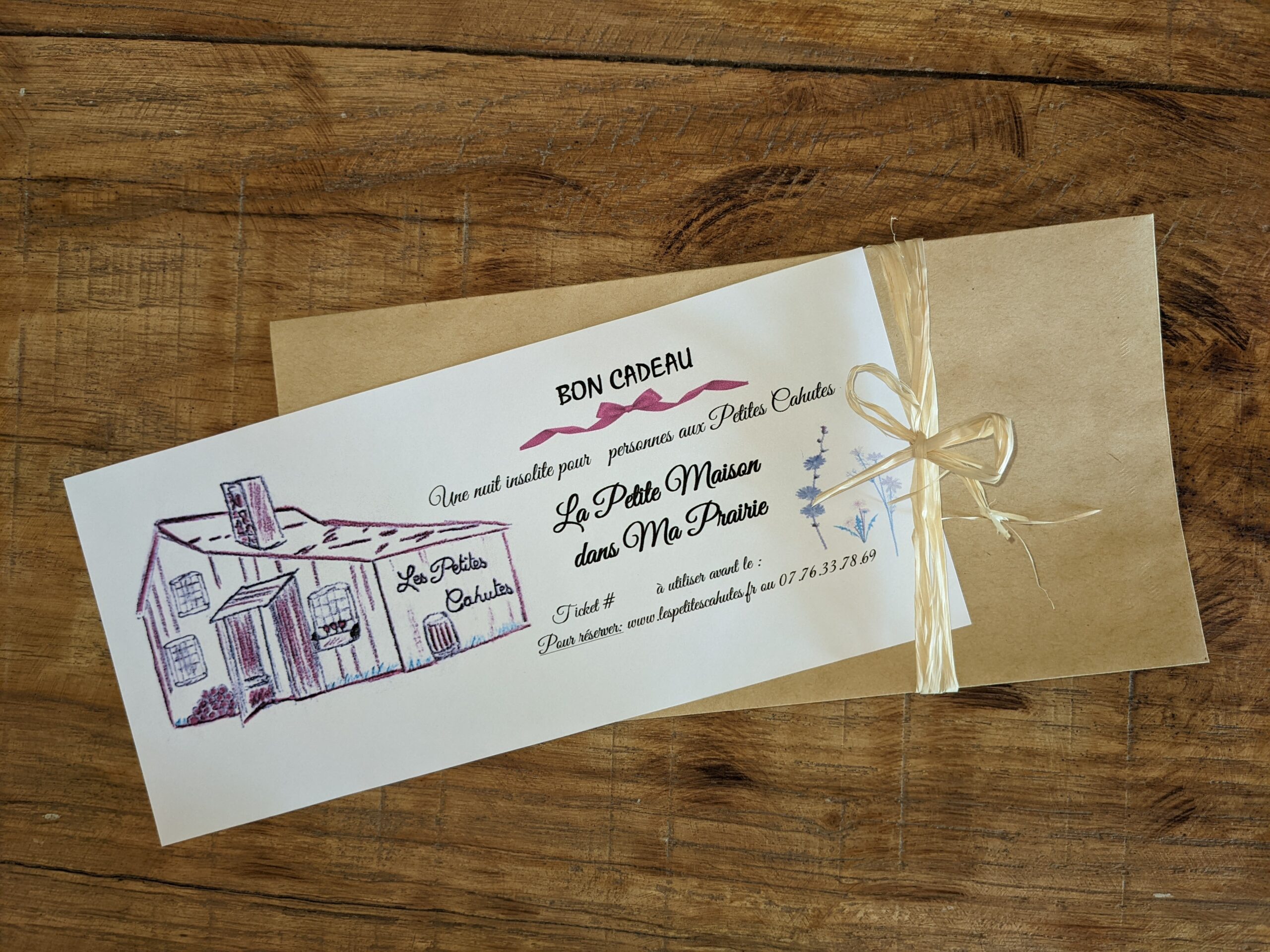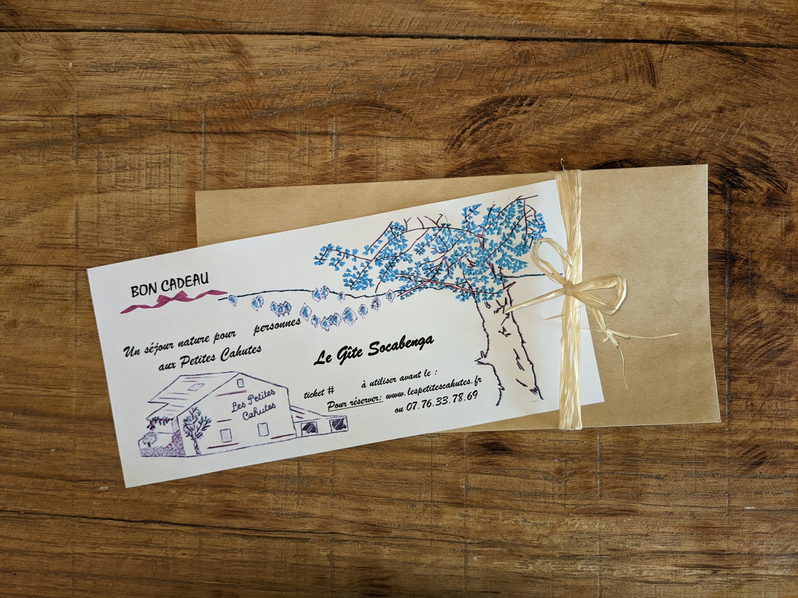 Les chèques cadeaux peuvent être commandés par e-mail, ou être achetés sur place aux Petites Cahutes.